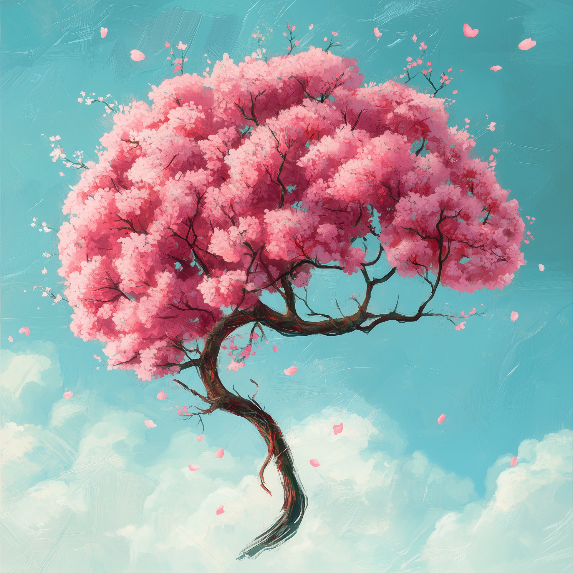 Au cœur du vide, un majestueux arbre de Sakura flotte, ses branches et ses fleurs dessinant la silhouette d’un cerveau. Inspiré par la fusion de la nature et de l’intellect, Brainakura symbolise la réflexion profonde et la beauté intemporelle de l’esprit humain. Cette œuvre rappelle la tranquillité d’un jardin zen et la puissance de la pensée.