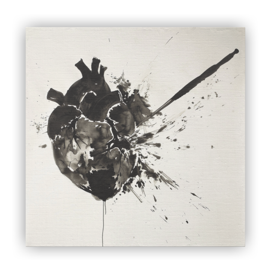 Et si l’amour intense nécessitait une intervention chirurgicale ? Avec Heart Attack, découvrez une œuvre où des taches d’encre, dans un style traditionnel japonais, forment un cœur anatomique vibrant. Le scalpel qui le découpe symbolise la précision chirurgicale et l’émotion brute, créant une fusion parfaite entre art et anatomie.
