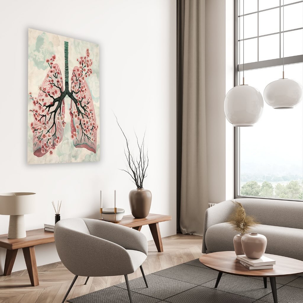 Réalisée en giclée sur toile de haute qualité, chaque détail de "Pneumo-floraison" est minutieusement pensé pour capturer l'essence de la respiration et la beauté éphémère des fleurs de cerisier. Cette œuvre d'art exceptionnelle est parfaite pour ajouter une dimension artistique et apaisante à votre maison, bureau ou cabinet médical.