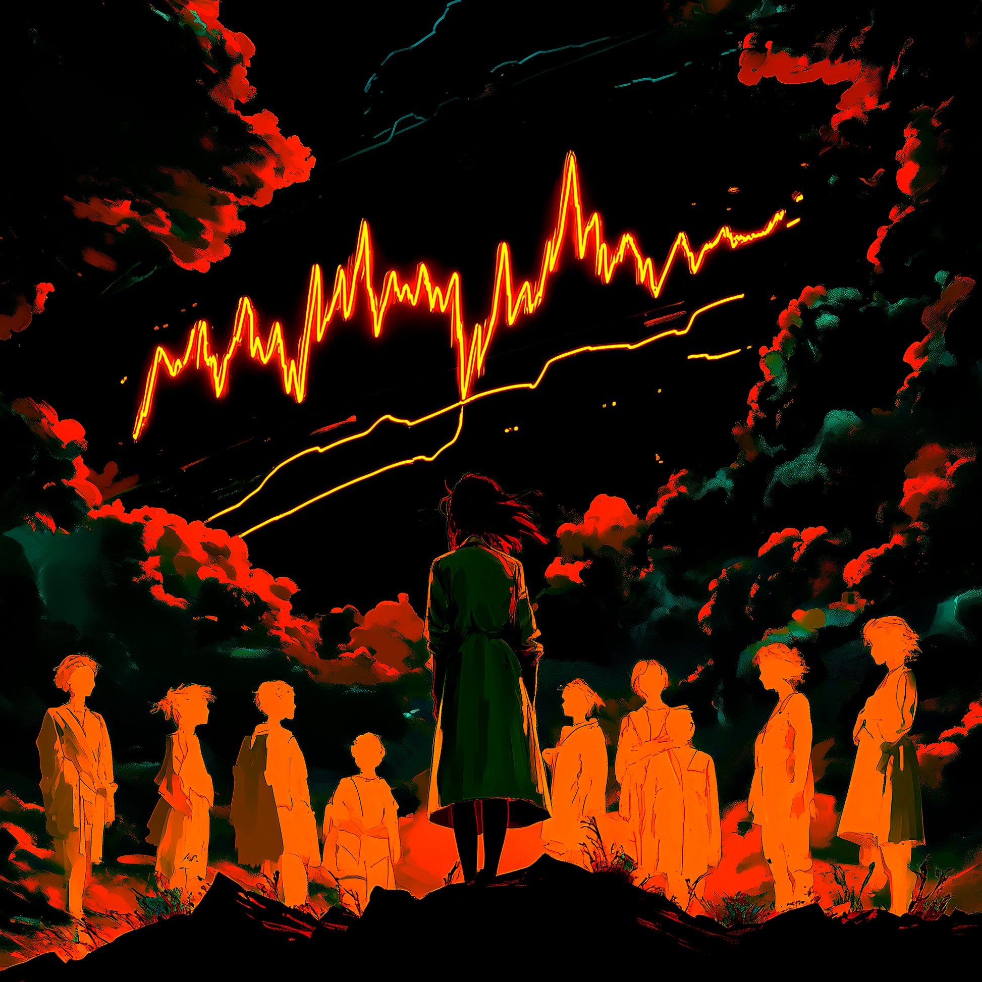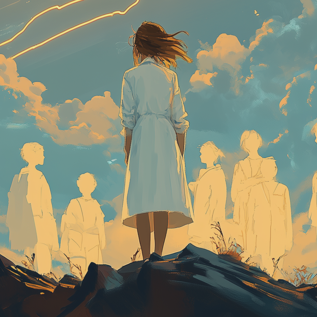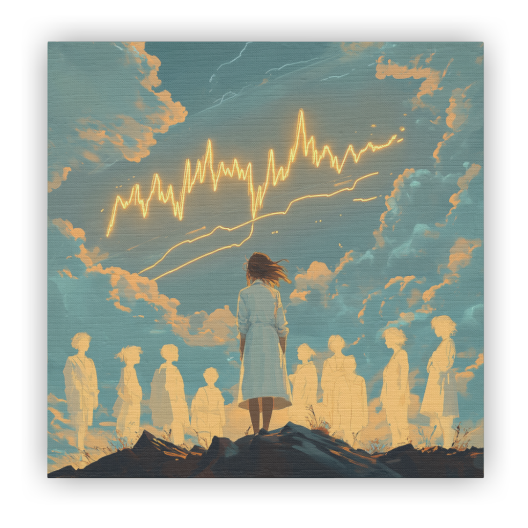 Dans ECG of the Past, une silhouette médicale se tient face à son passé, où des ombres silencieuses témoignent des vies qu’elle n’a pas pu sauver. L’ECG, cette onde vibrante de vie, se prolonge à l’infini, oscillant entre espoir et absence, entre ce qui continue de battre et ce qui s’est éteint.